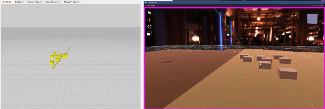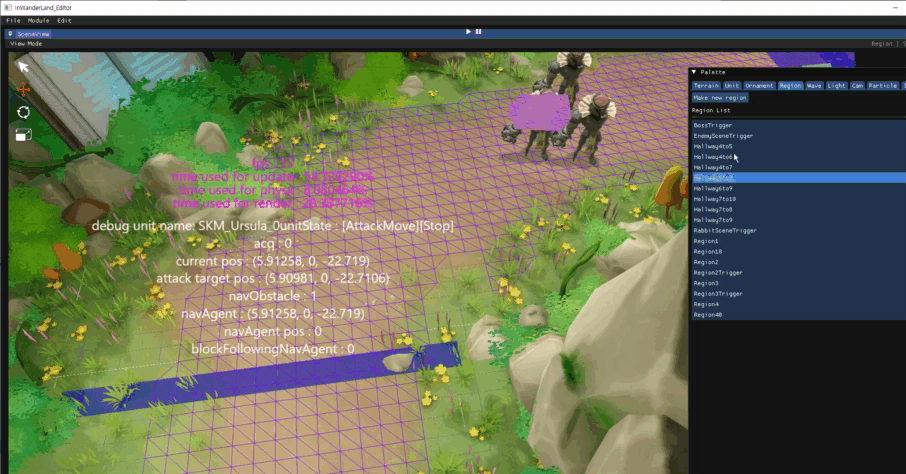 워커 스레드는 클라이언트의 입력 패킷이 들어왔을 때 이를 세션 정보와 대조해 게임 업데이트를 위한 알맞은 메시지를 생성해 메시지 큐에 넣는다. 게임 업데이트는 워커스레드와는 별개로 매 게임 루프가 실행될때마다 워커 스레드가 쌓아놓은 메시지 적재 큐는 게임 업데이트에서 사용하는 메시지 실행 큐와 스왑되고, 메시지 실행 큐로 넘어온 메시지들은 게임의 상태를 갱신하는데에 쓰인다.